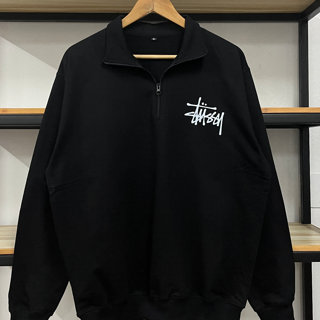 “Stusy” Black Zip-Up Sweatshirt